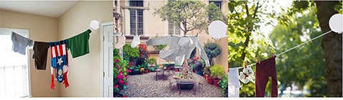 Ook op balkons hoef je geen waslijnen meer op te vouwen die hun takken verliezen en bezwijken onder te veel gewicht. Je kunt je was tot 5 kg aan de waslijn hangen.